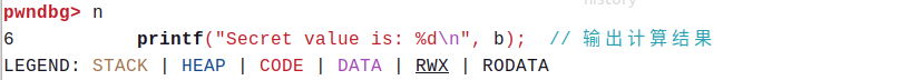 6 printf("Secret value is: %d\n", b); // 输出计算结果