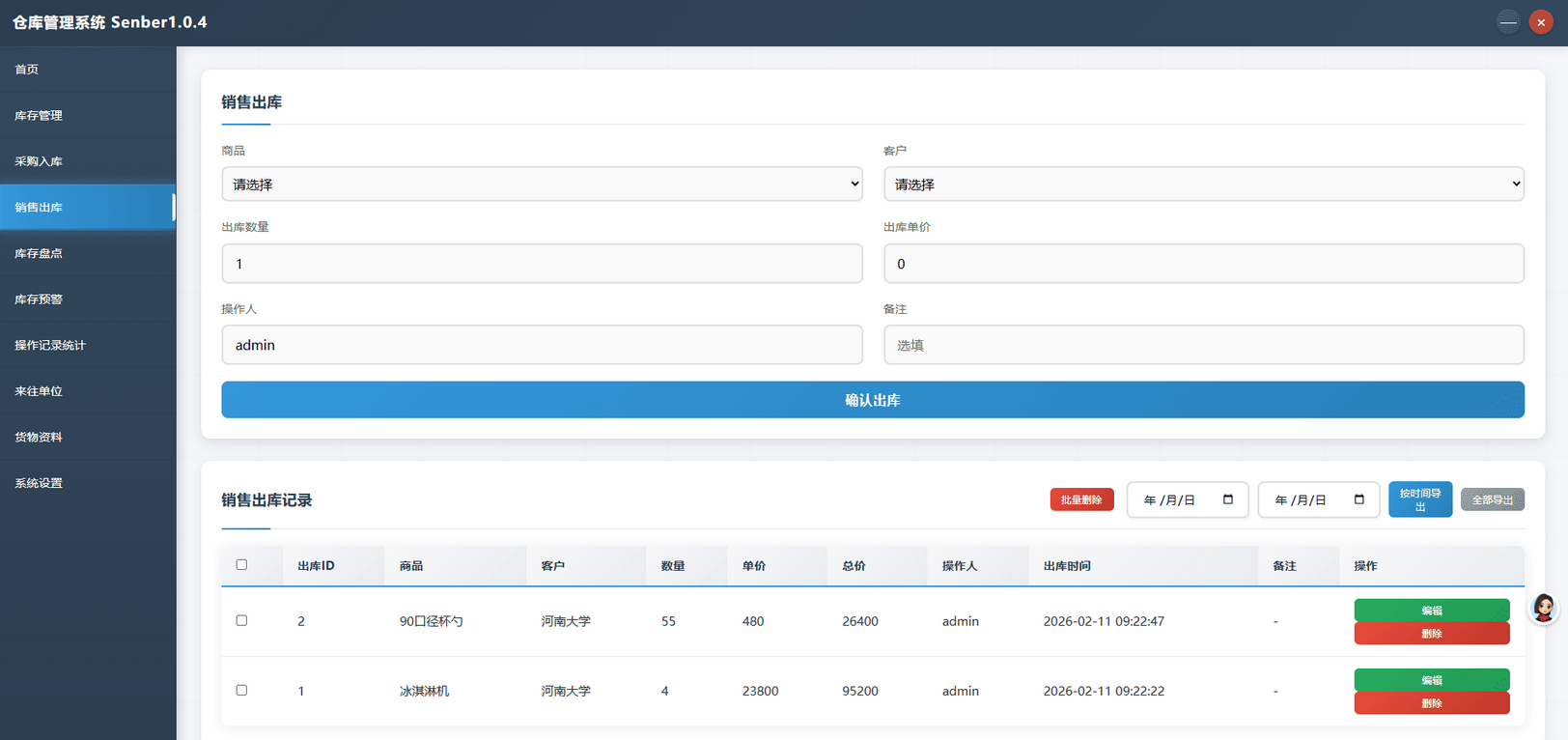 操作记录 :详细记录出库操作信息