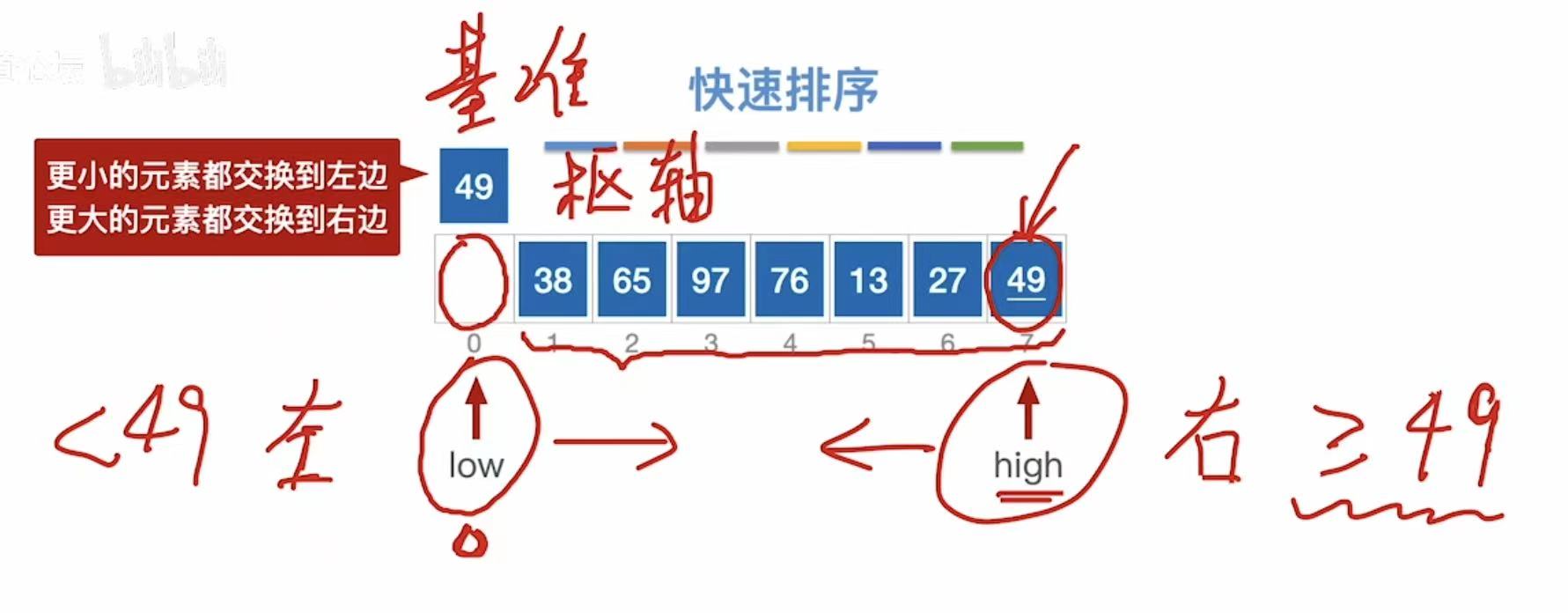 - 此时被指的空间就是基准值49该插入的位置