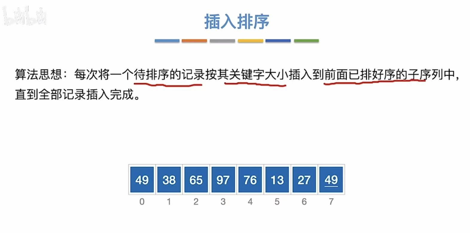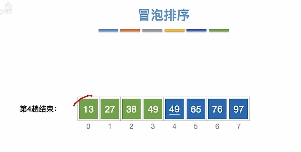 - 49和前面的所有数字比,49出来,因为和第一个49相等,所以插入到第一个49的位置的后面