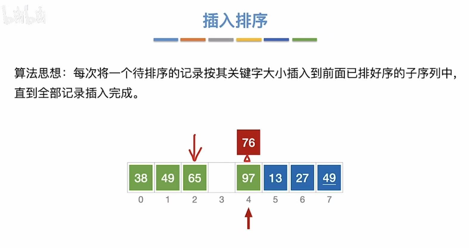 - 97和76比,76出来,96移动到76原来的位置,然后76插入到96原来的位置