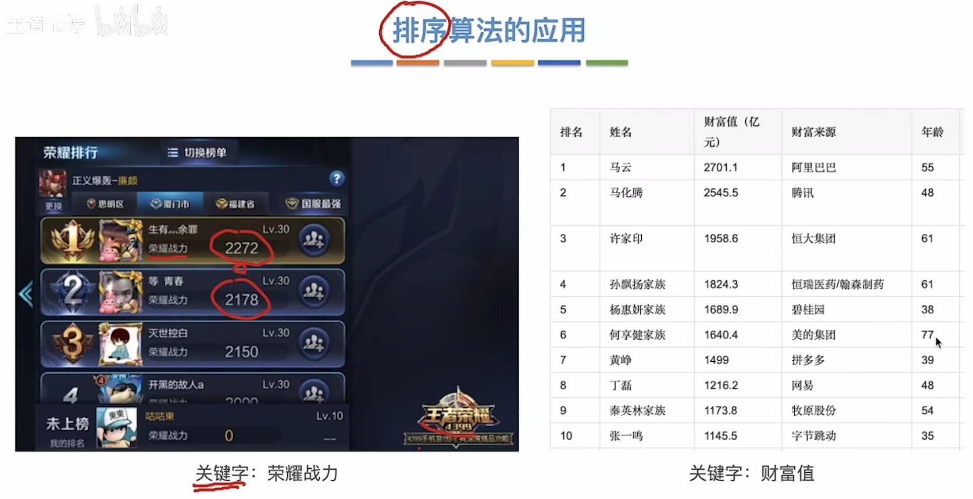 2. 排序算法的应用