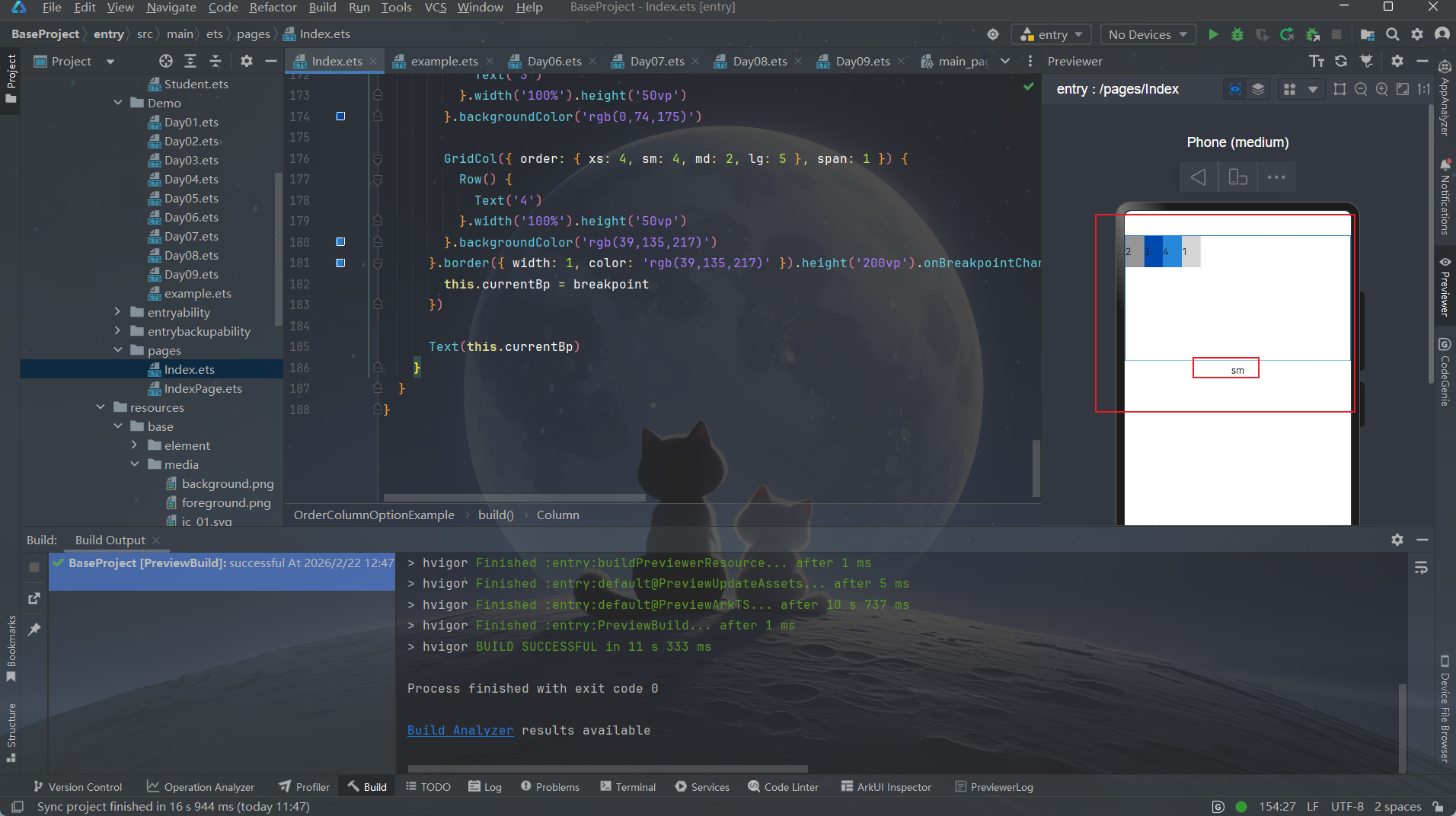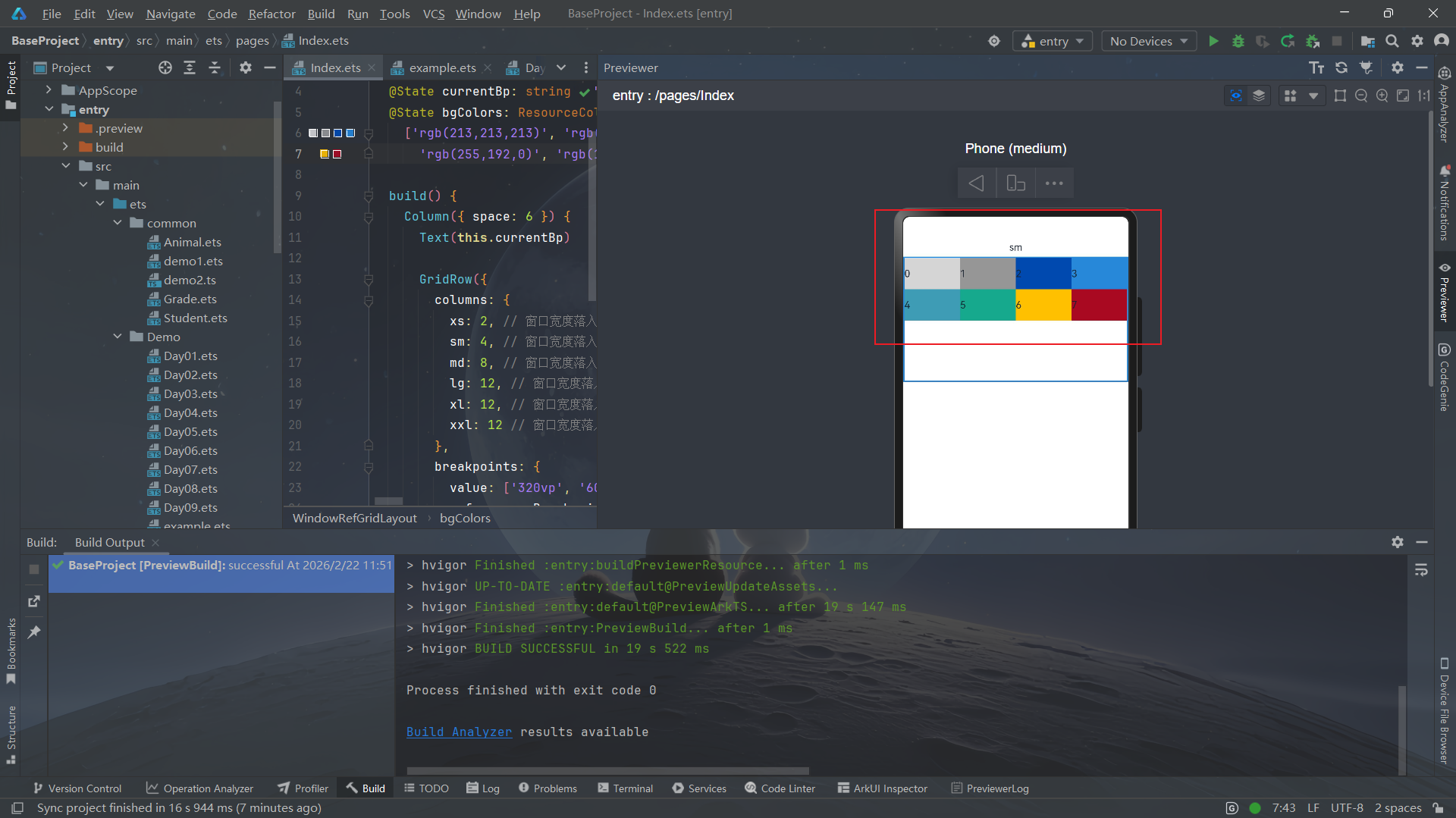 💡 预览说明:由于模拟器设备有限,以下截图均基于 DevEco Studio 自带预览器,展示不同断点下的布局效果。