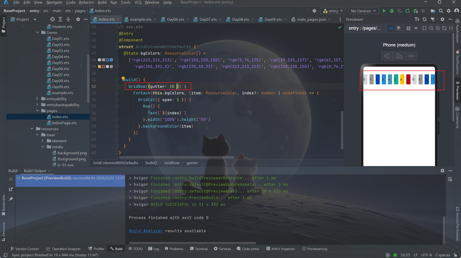 GridRow({ gutter: 10 }) { /* ... */ } // 间距 10vp
