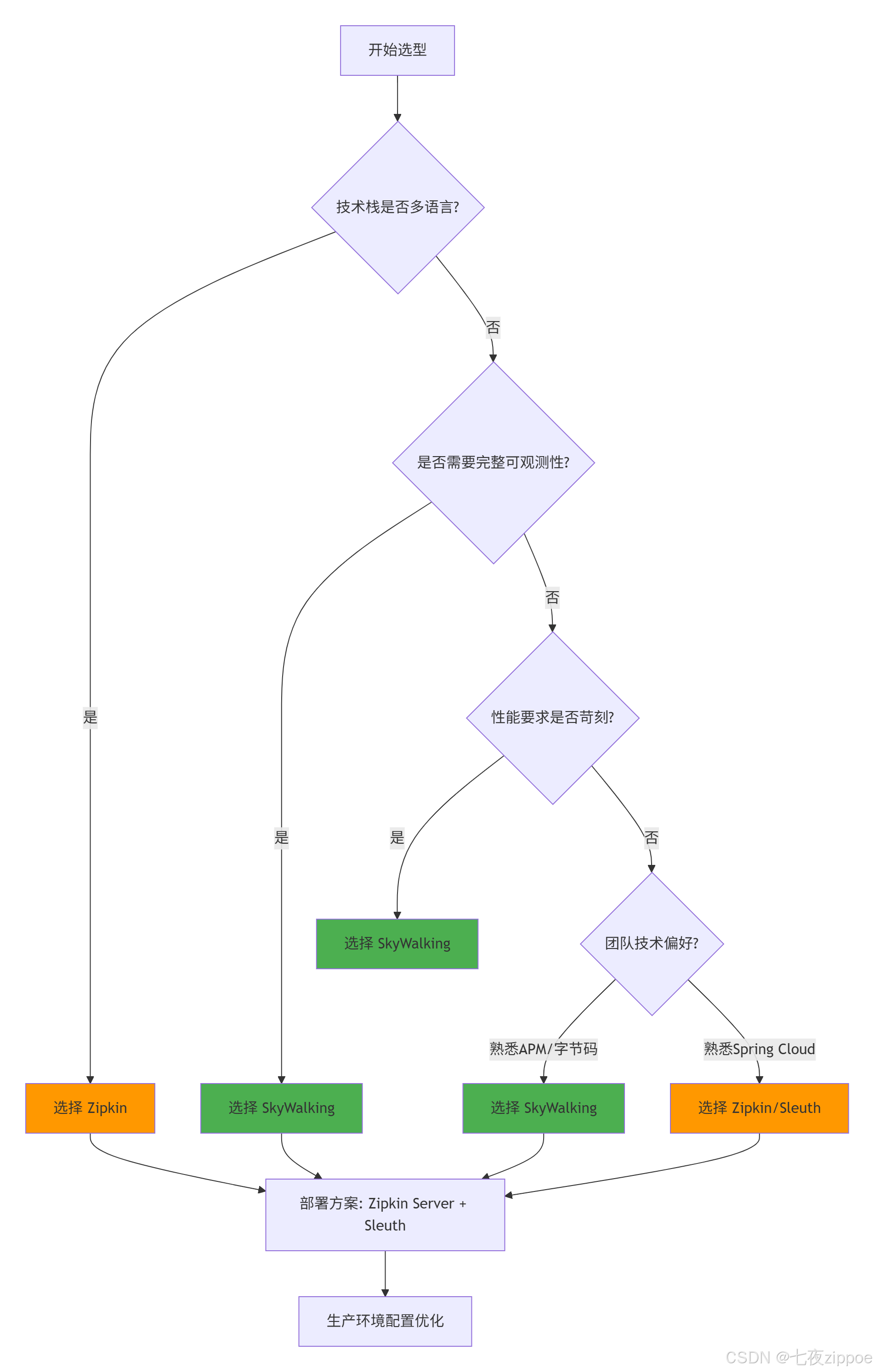 生产建议:大型Java项目优先考虑SkyWalking,微服务技术栈多样时选择Zipkin。