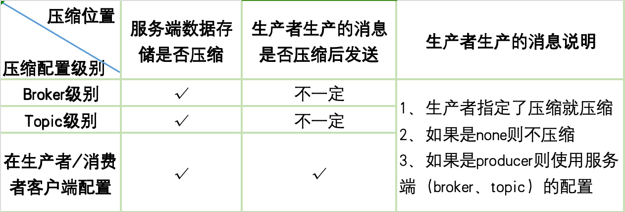 这里 producer 表示使用生产者设置的压缩类型。如果不设置,默认为 producer。