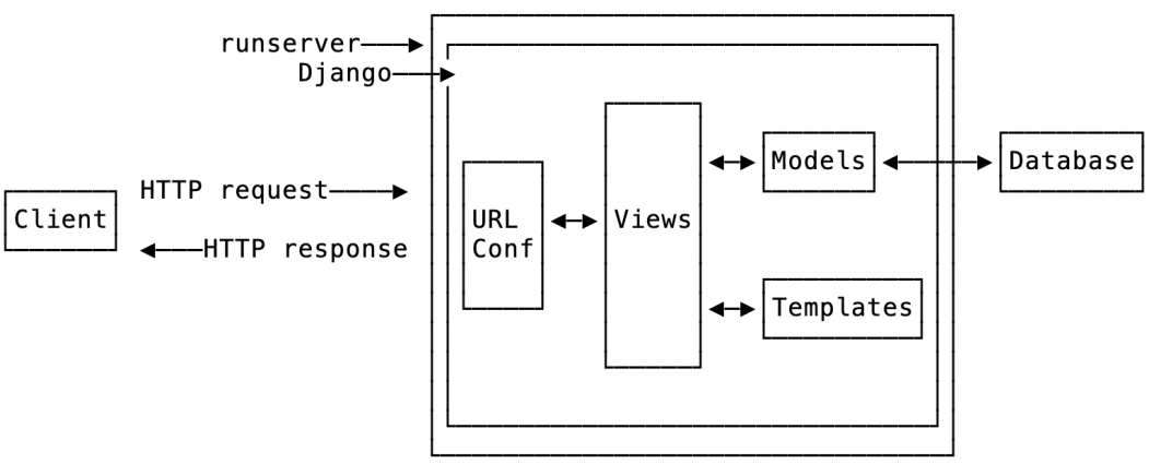 本地开发中,情况要简单得多。Django 配备了一个轻量级的开发服务器runserver,它管理 HTTP 请求和响应,帮助 Django 从数据库生成动态内容,并提供静态文件(稍后会详细介绍)。它非常强大。