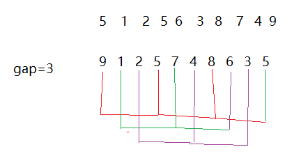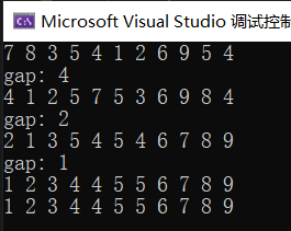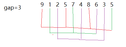 目前他并没有有序,但是他相比之前是不是更接近有序了,大的数到后面去了小的数就更接近前面了,那现在我们进行插入排序就更快了,如果我们把gap设大一点,就很快到大的值就到后面去了