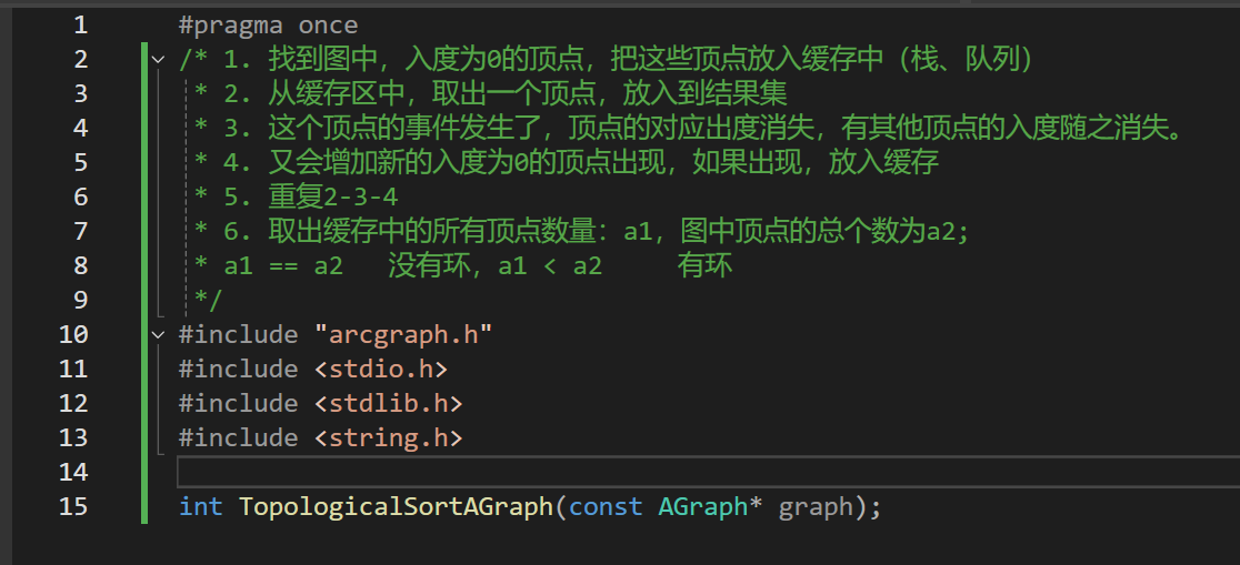 找到图中,入度为0的顶点,把这些顶点放入缓存中(栈、队列)