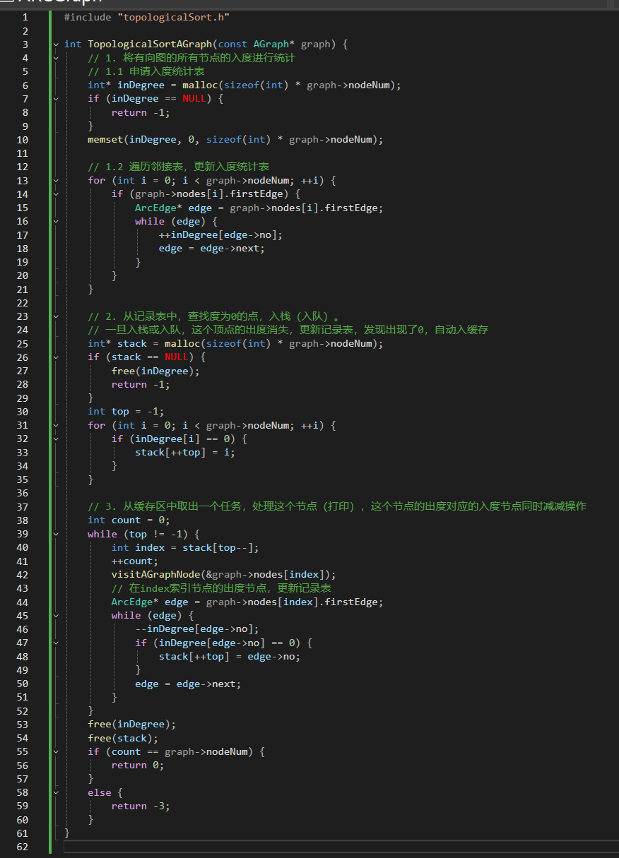 拓扑排序:根据步骤算法入度,出度要实时更新,所以正邻接表只记录了出度,十字链表反而麻烦,于是应用下方模型