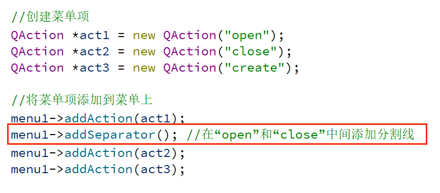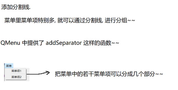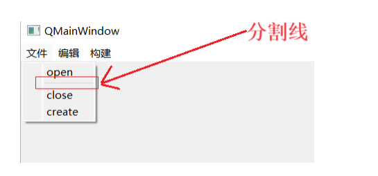 在菜单项之间可以添加分割线。分割线如下图所示,添加分割线是通过 QMenu 类 提供的