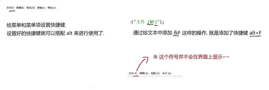 在窗口上创建⼀个菜单栏,在菜单栏中添加⼀些菜单,在某⼀个菜单中添加⼀些菜单项。