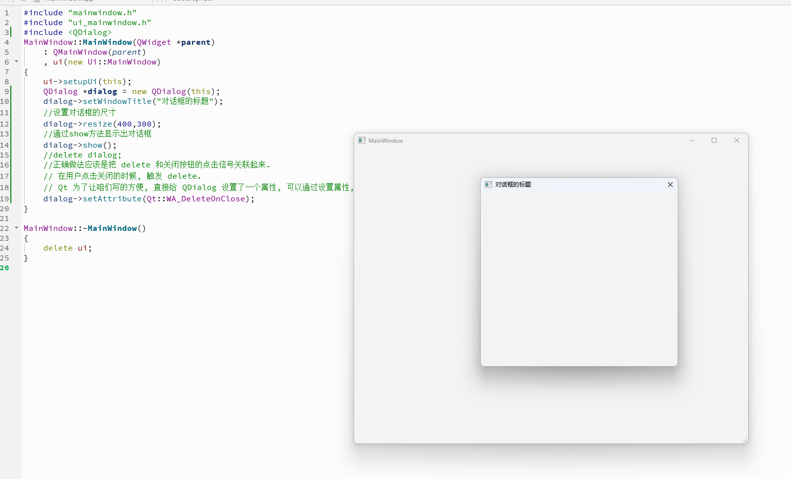 - QColorDialog(QWidget * parent = nullptr) //创建对象的同时设置父对象.