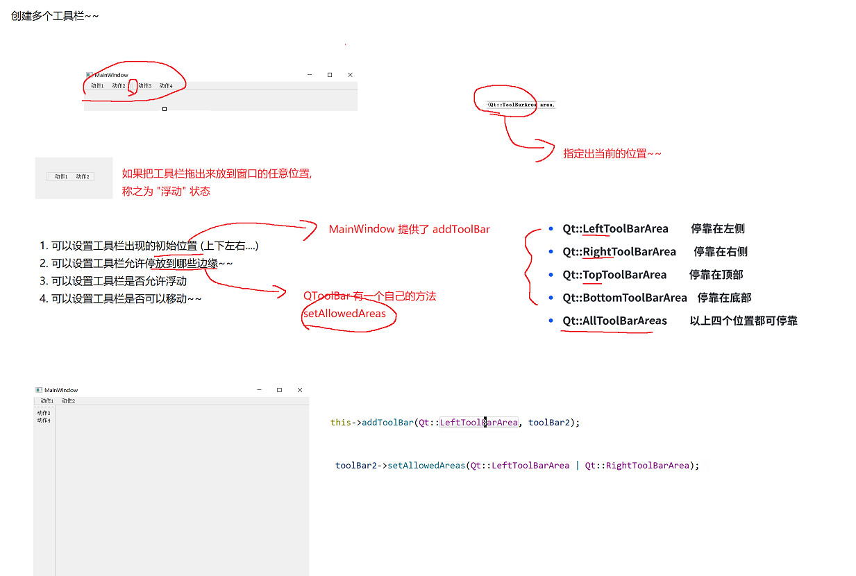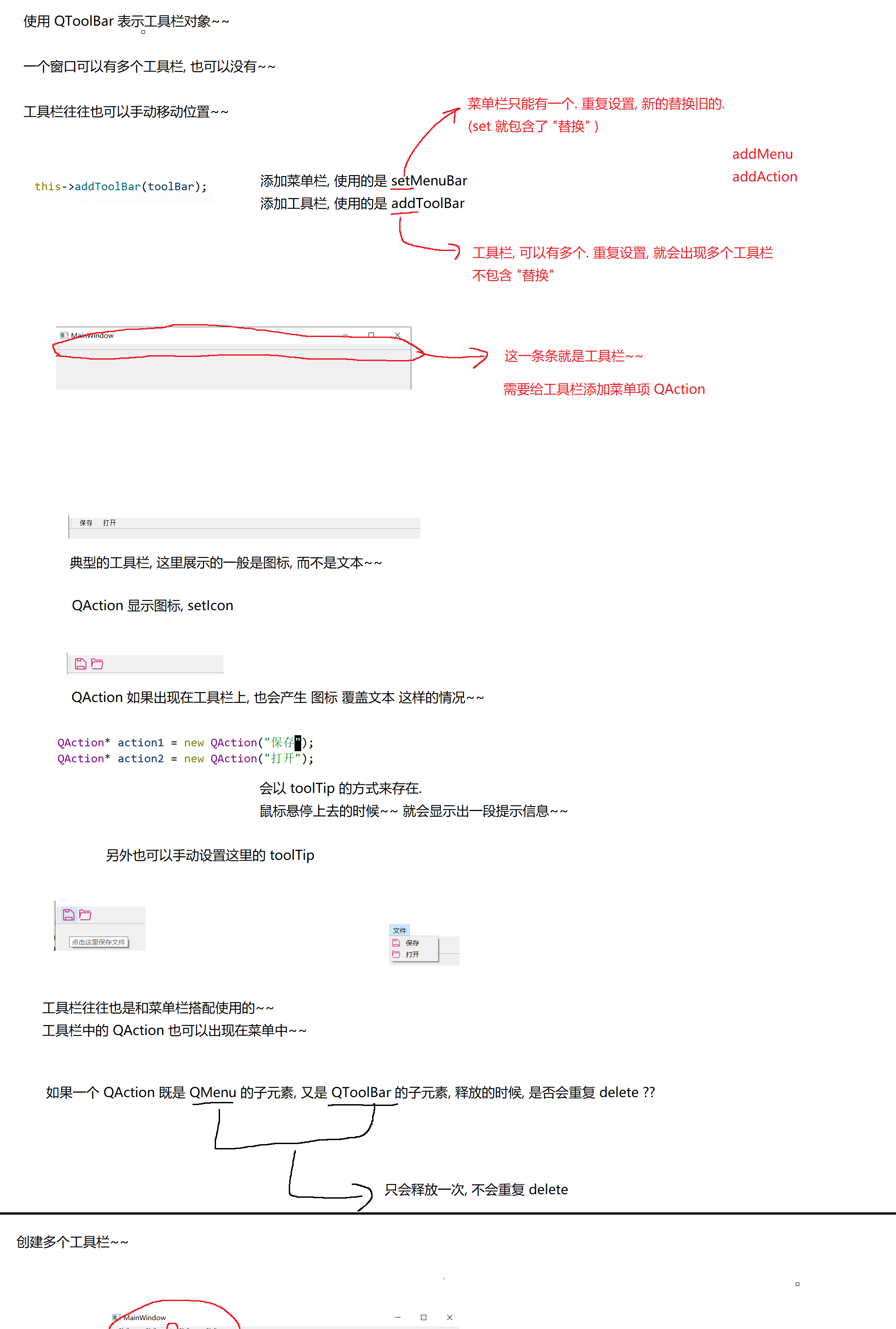 - QAction 可以给菜单栏使用, 也可以给工具栏使用.