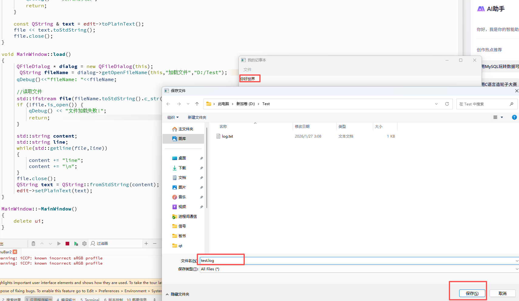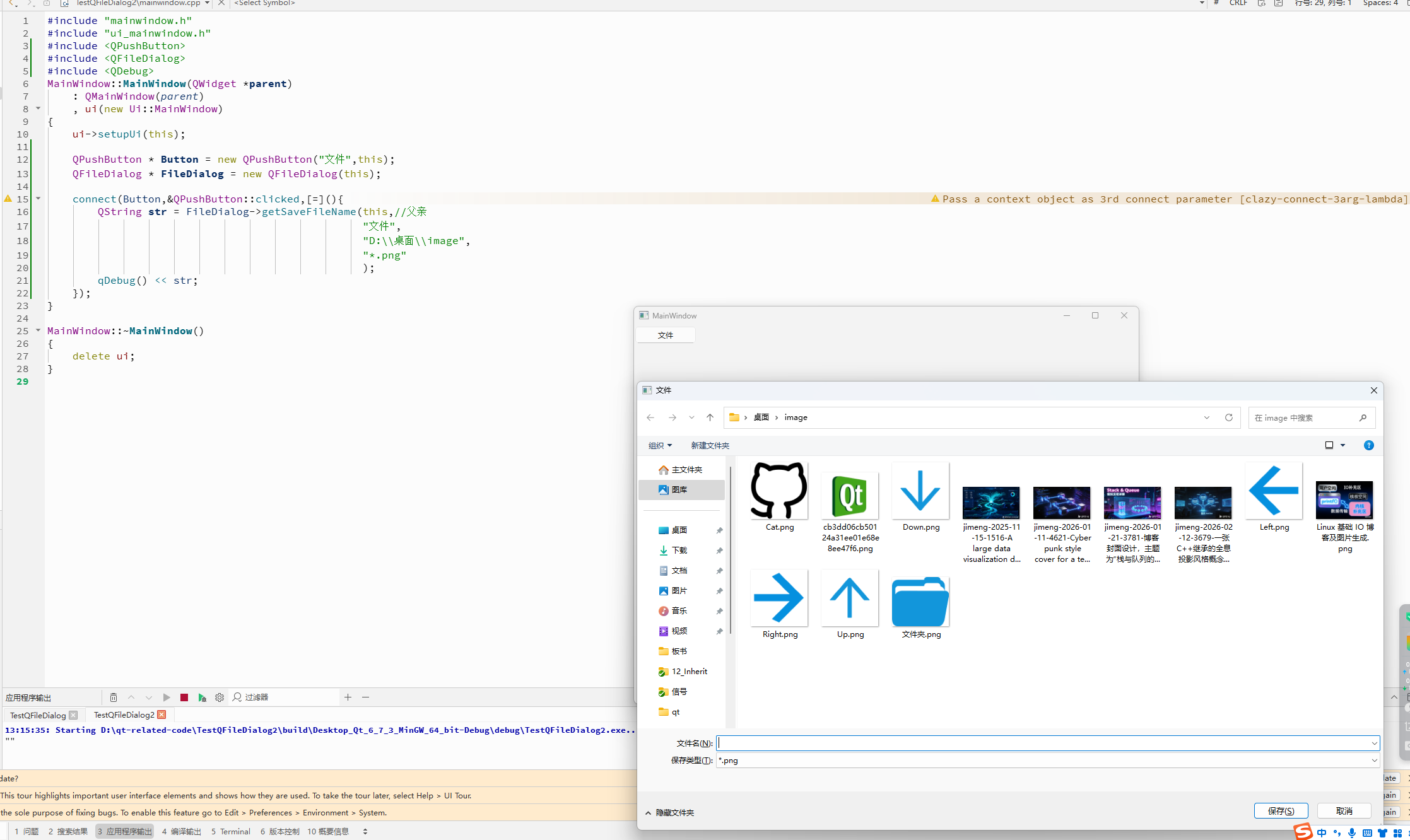 getSaveFileName 用于保存文件的场景. 此时的对话框可以输入问津名.