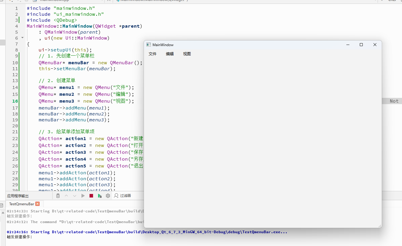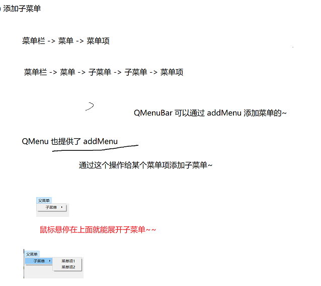 创建菜单,并通过 QMenu 提供的 addMenu() 函数 来添加菜单。