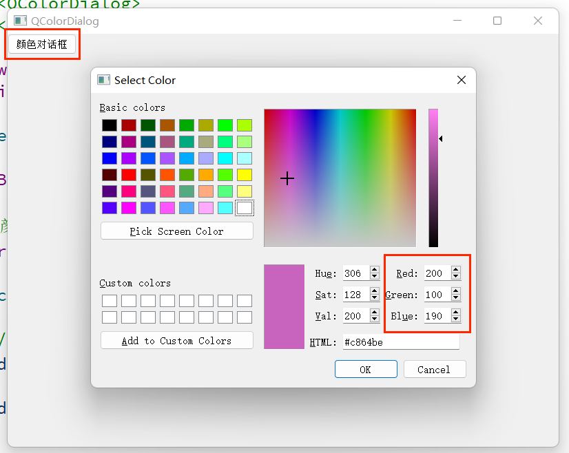 ColorDialog->setCurrentColor(QColor(200,100,190));