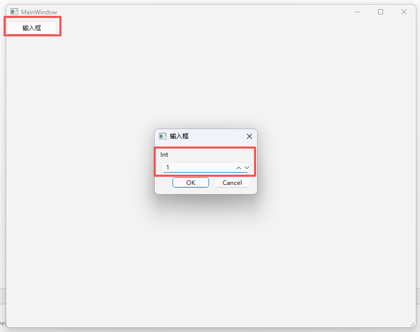 2.int getInt (QWidget * parent,const QString &title,const QString &label,double value = 0,double min = -2147483647, double max = 2147483647,int decimals = 1,bool * ok = nullptr,Qt::WindowFlags flags = Qt::WindowFlags());