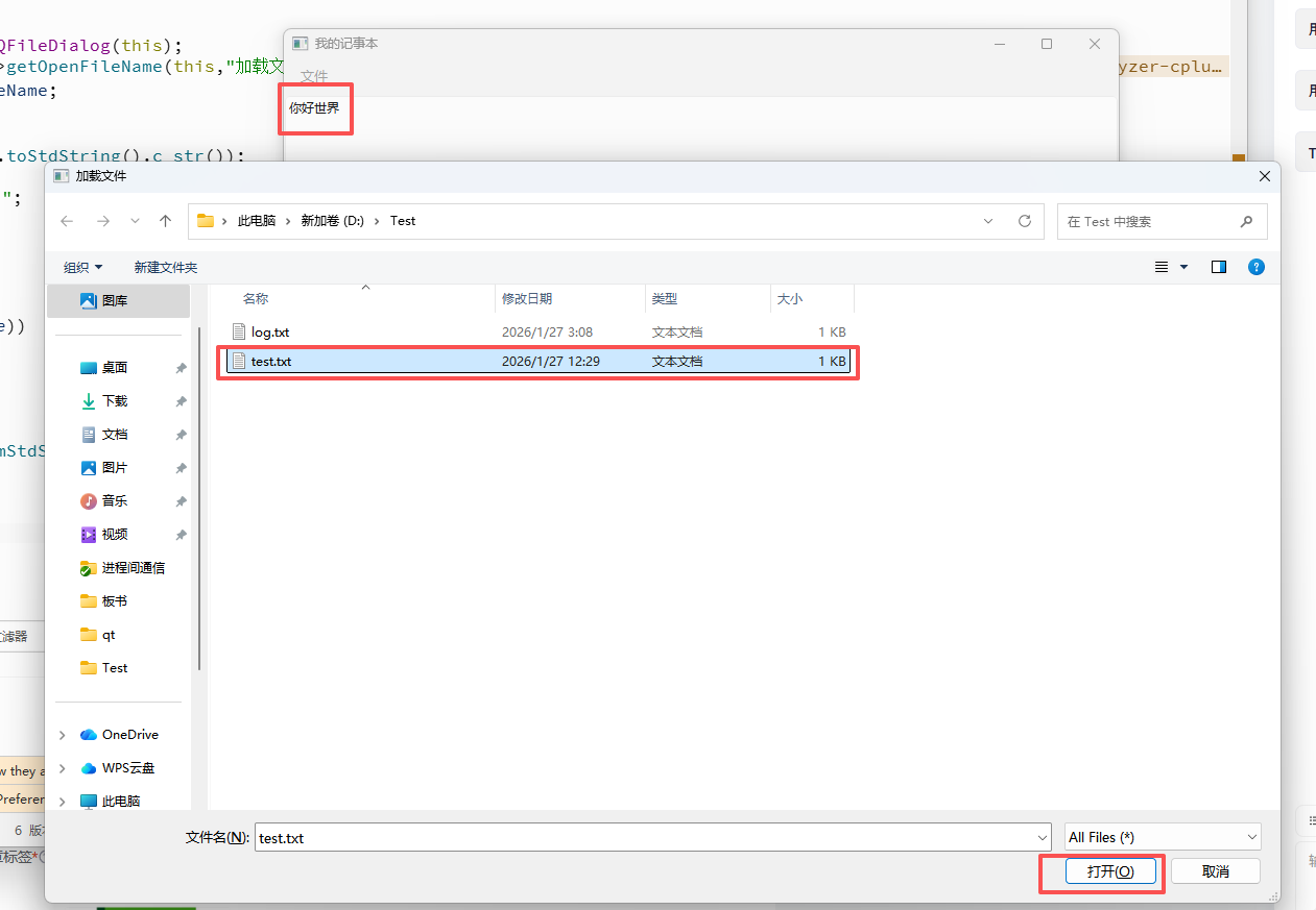 getOpenFileName 用于打开文件的场景. 此时的对话框可以获取到鼠标选择的⽂件名.