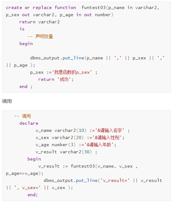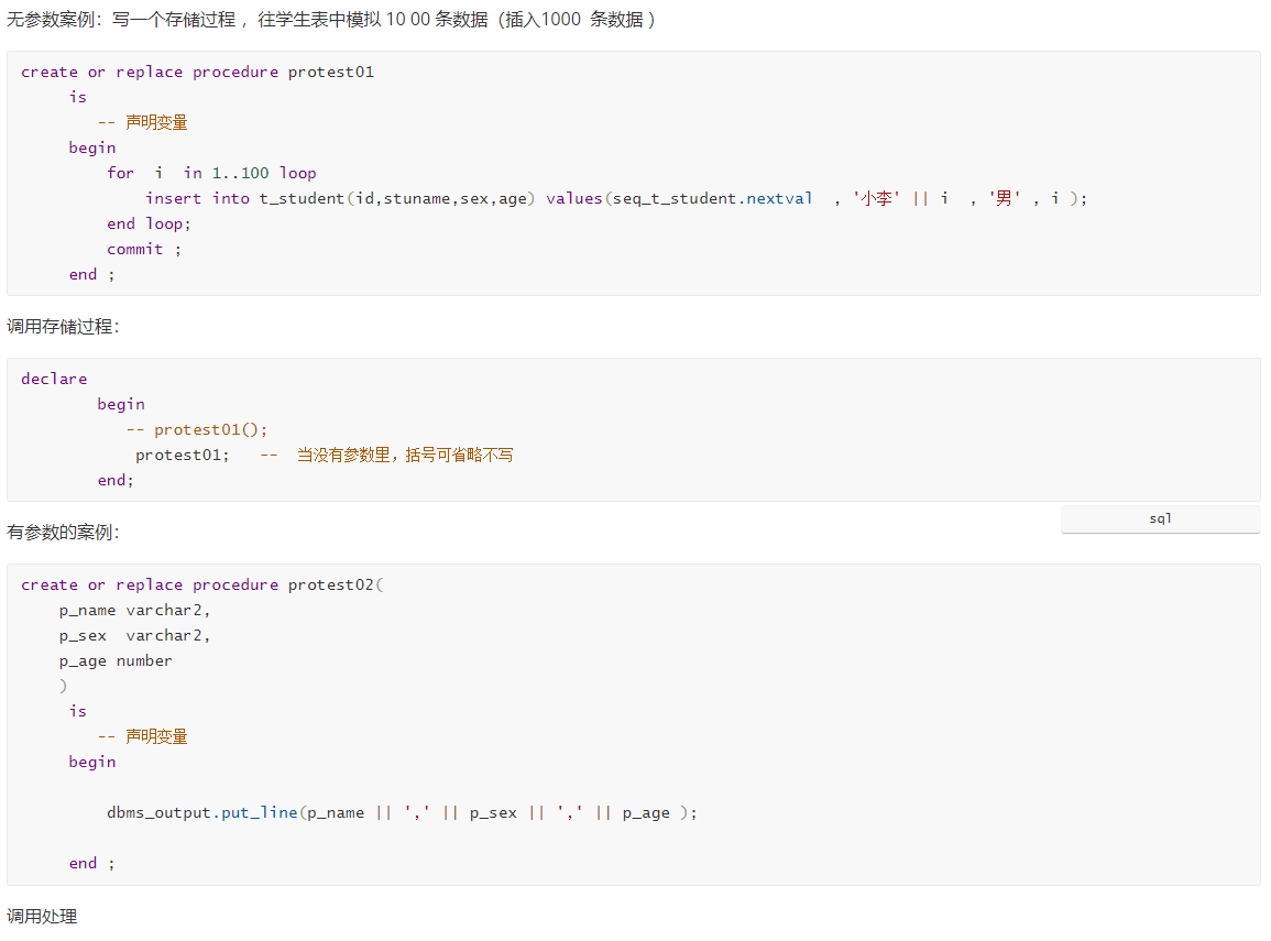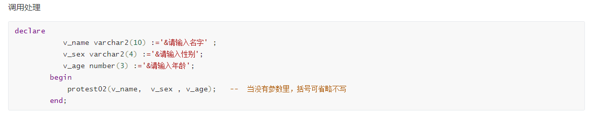 protest03(v_name, v_sex , v_age); -- 当没有参数里,括号可省略不写