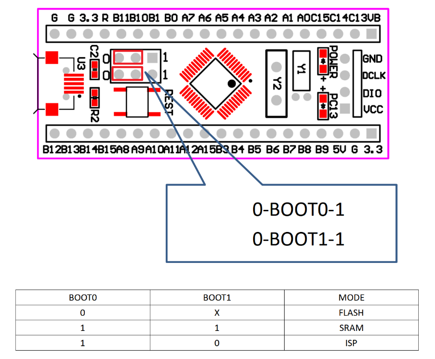 蓝色小药丸烧录方式有2种,新手推荐SWD烧录(串口烧录 需进入烧录模式:按住蓝色小药丸的