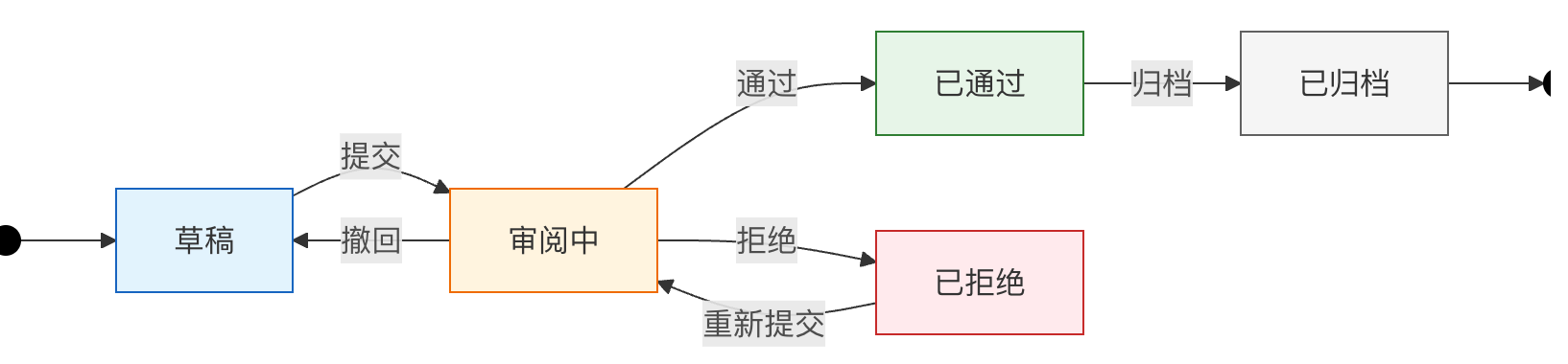 | 状态 | [草稿,审阅中,已拒绝,已通过,已归档] |