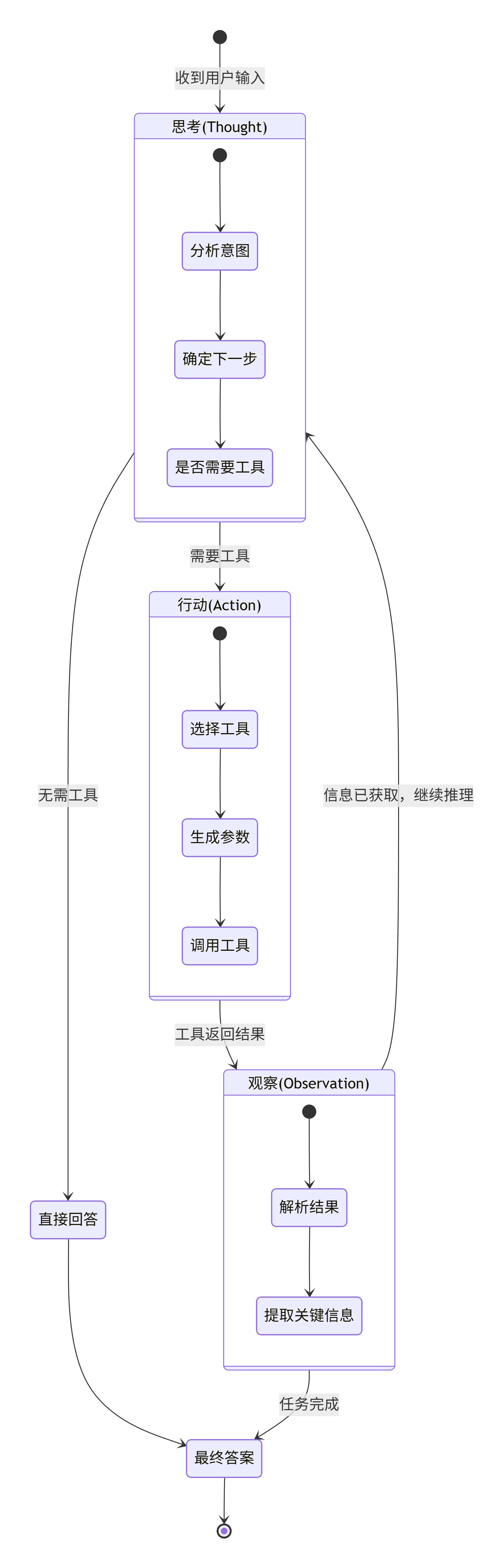 循环或结束:根据观察结果,LLM决定是继续思考还是给出答案