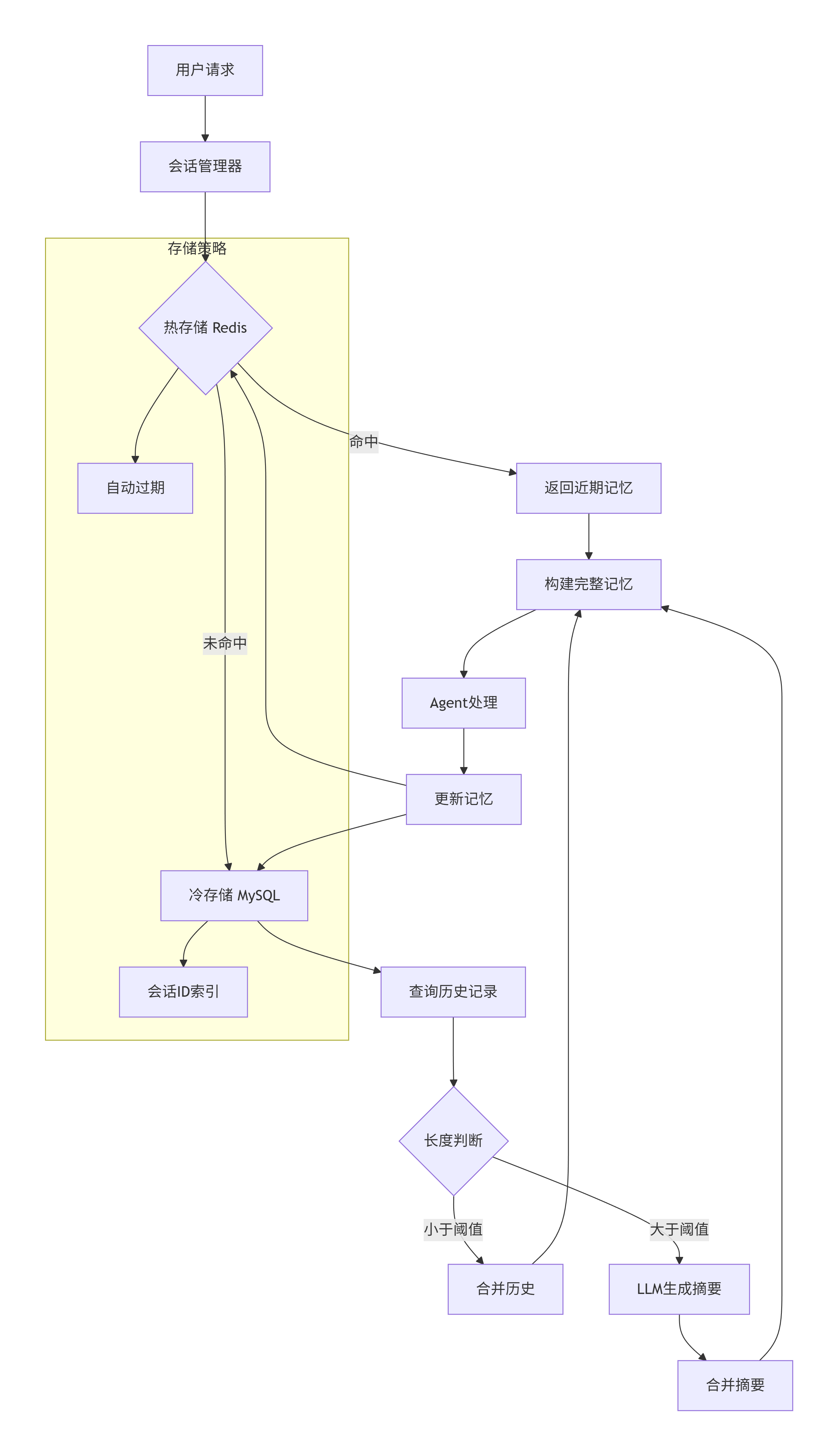 Memory是Agent保持对话连续性的关键。但在生产环境中,简单的内存存储远远不够,我们需要一套完整的记忆管理方案。