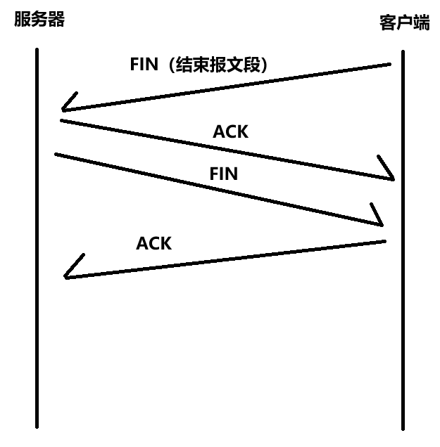 结束报文段FIN(六位标志位的第六位)、不一定非得是客户端先发FIN(三次握手一定是客户端先发起),也有可能是服务器先发FIN,这里以客户端先发为例