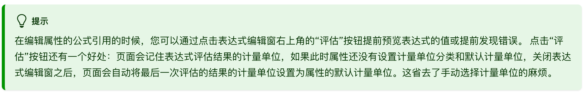- 公式结果的计量单位和属性的计量单位不一致的时候,自动将公式结果的计量单位转换为属性的计量单位展示。(此处的"属性的计量单位"指用于展示属性值的计量单位)。