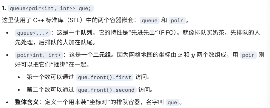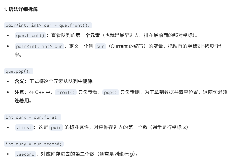 pair<int, int> cur = que.front();//查看队首元素,并拷贝给cur;