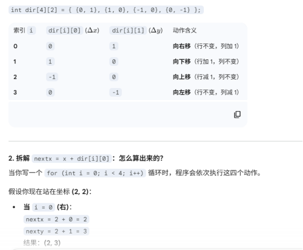 int nexty = cury + dir[i][1];//获取周边四个方向的坐标