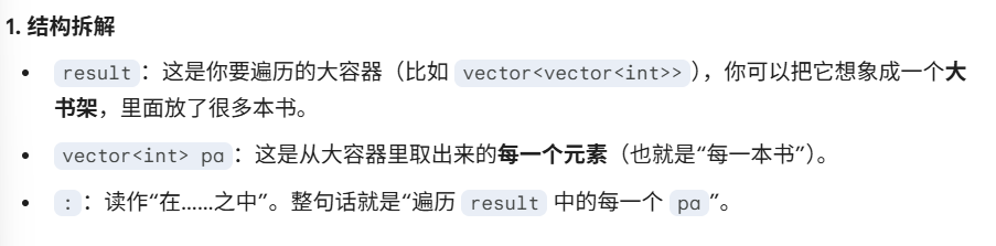 for(const vector<int> &pa : result){//循环的是result中存的每种路径