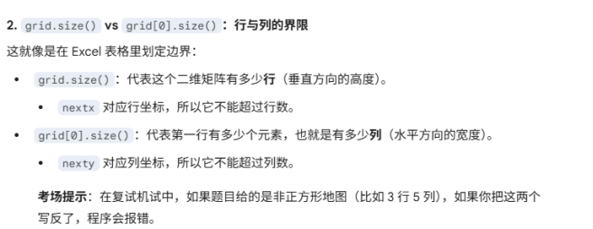if (nextx < 0 || nextx >= grid.size() || nexty < 0 || nexty >= grid[0].size()) continue;//越界就跳过