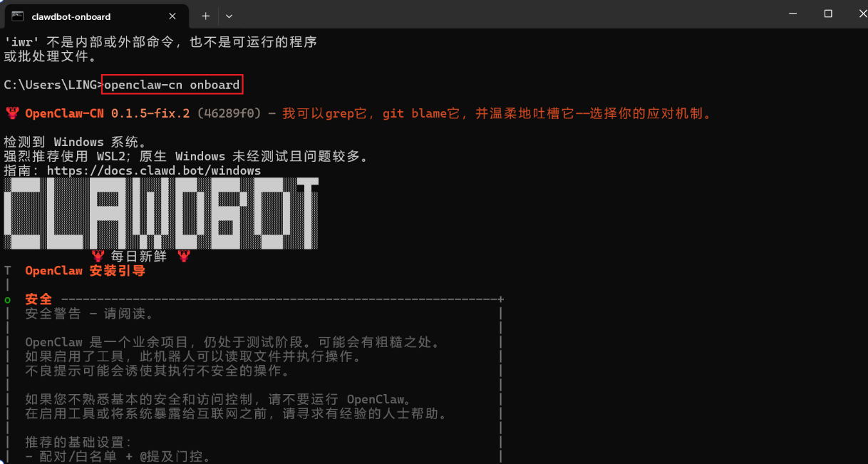 - onboard 卡住或报错 → 检查网络,重新运行 openclaw-cn onboard。