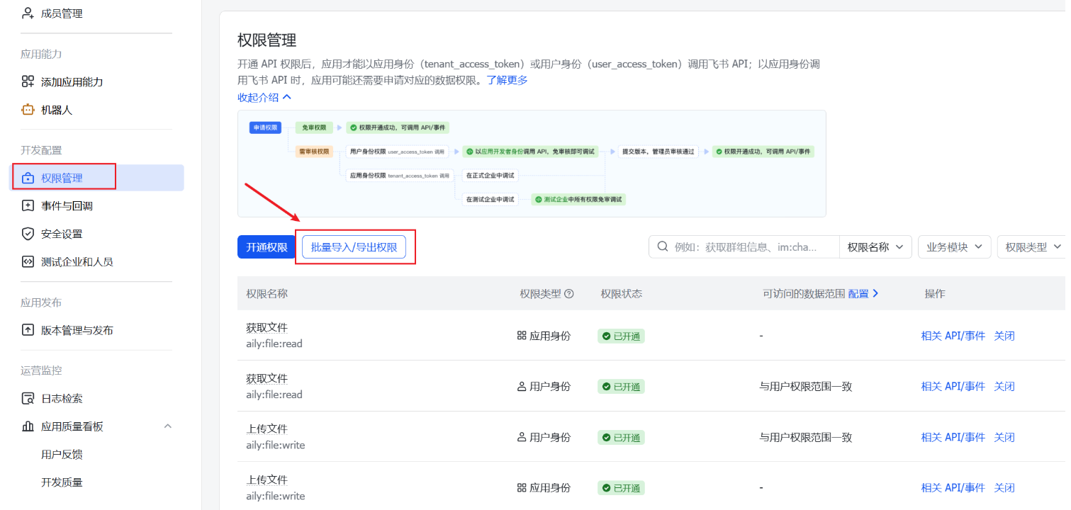 2.在权限管理/批量导入/导出权限中清空原有权限,粘贴复制下方内容