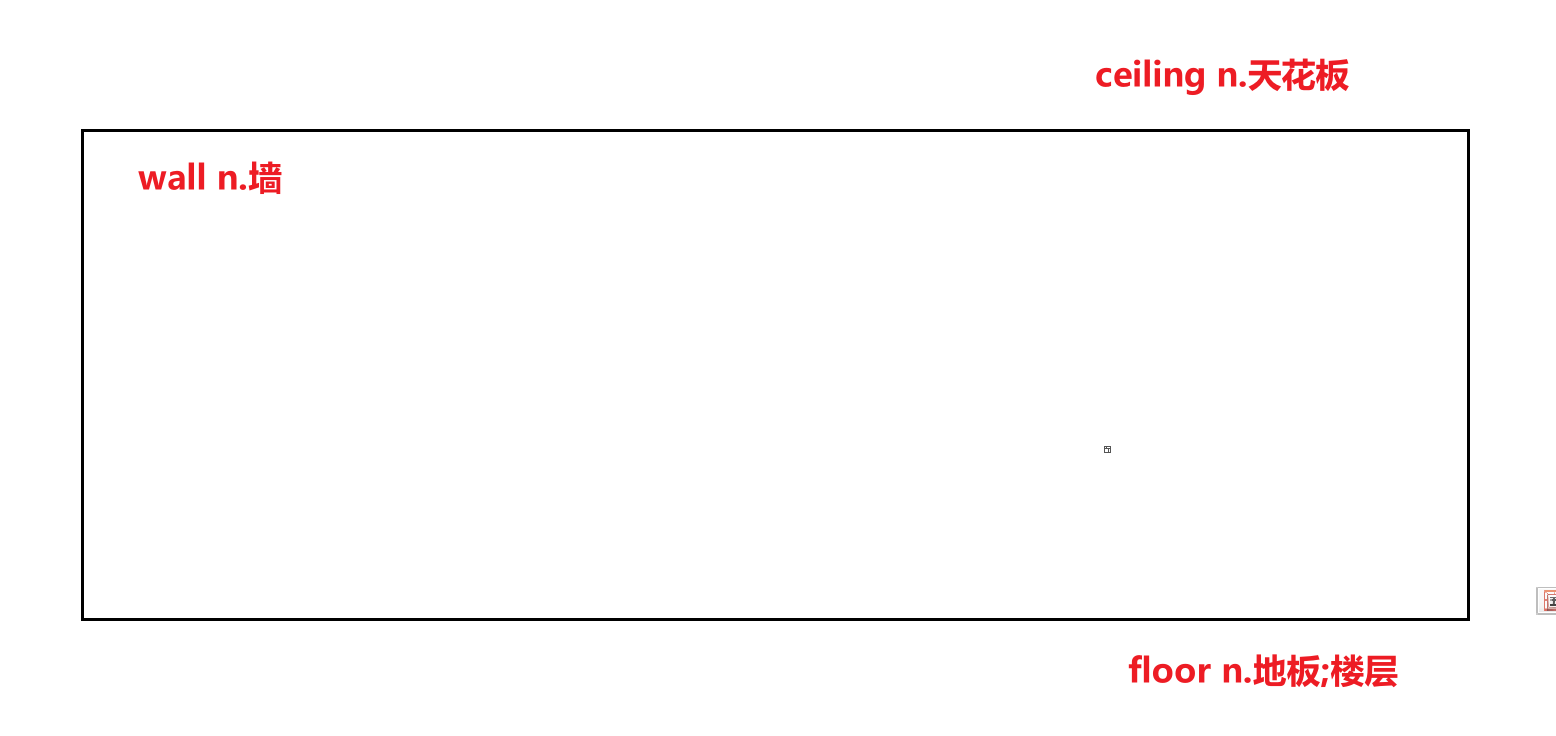 这是什么,这就是一个普通家庭房间中的一面墙(wall),显然,这面墙的上面,就是天花板(ceiling),下面就是地板(floor):