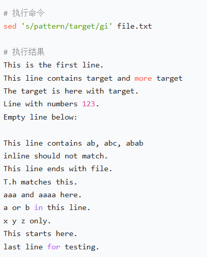 (2) 全局忽略大小写替换(所有 "pattern/Pattern" 替换为 "target")