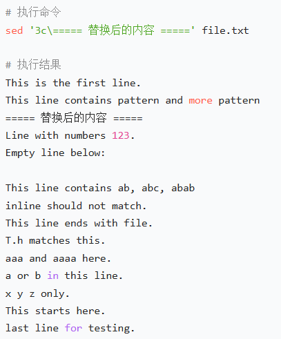 sed '3c\===== 替换后的内容 =====' test.txt