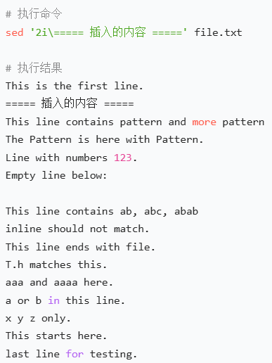 sed '2i\===== 插入的内容 =====' test.txt