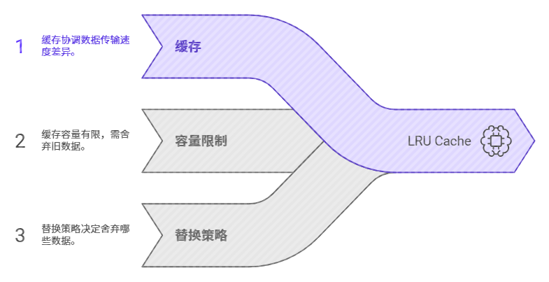 LRU Cache 是 Least Recently Used 的缩写,意为"最近最少使用",它是一种经典的 Cache(缓存)替换算法 。广义上的 Cache 指的是位于速度差异较大的两种硬件之间(例如 CPU 与主存、内存与硬盘、甚至硬盘与网络之间)用于协调数据传输速度差异的结构 。由于 Cache 的容量是有限的,当存储空间耗尽且又有新内容需要添加时,系统就必须依据特定的策略挑选并舍弃原有的部分内容,以腾出空间来存放新的数据 。