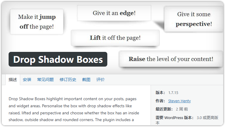 如果您不熟悉编程代码,也可以通过插件来添加阴影框。像Drop Shadow Box插件就是一个非常易用的工具,允许您在 WordPress 页面和文章编辑器中添加阴影框。