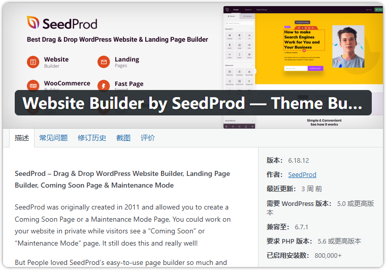 如果您正在设计自定义的着陆页或首页,页面构建器插件是一个非常不错的选择。许多页面构建器插件,如 SeedProd,提供了拖放功能,允许用户轻松自定义页面内容,并为元素添加阴影框。