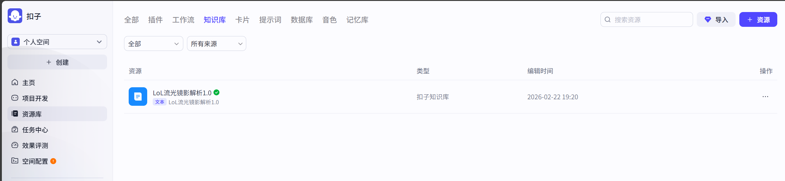 扣子编程可以查看、创建个人的一些:项目管理、资源库、任务中心、API 等等...新版本,还可以通过