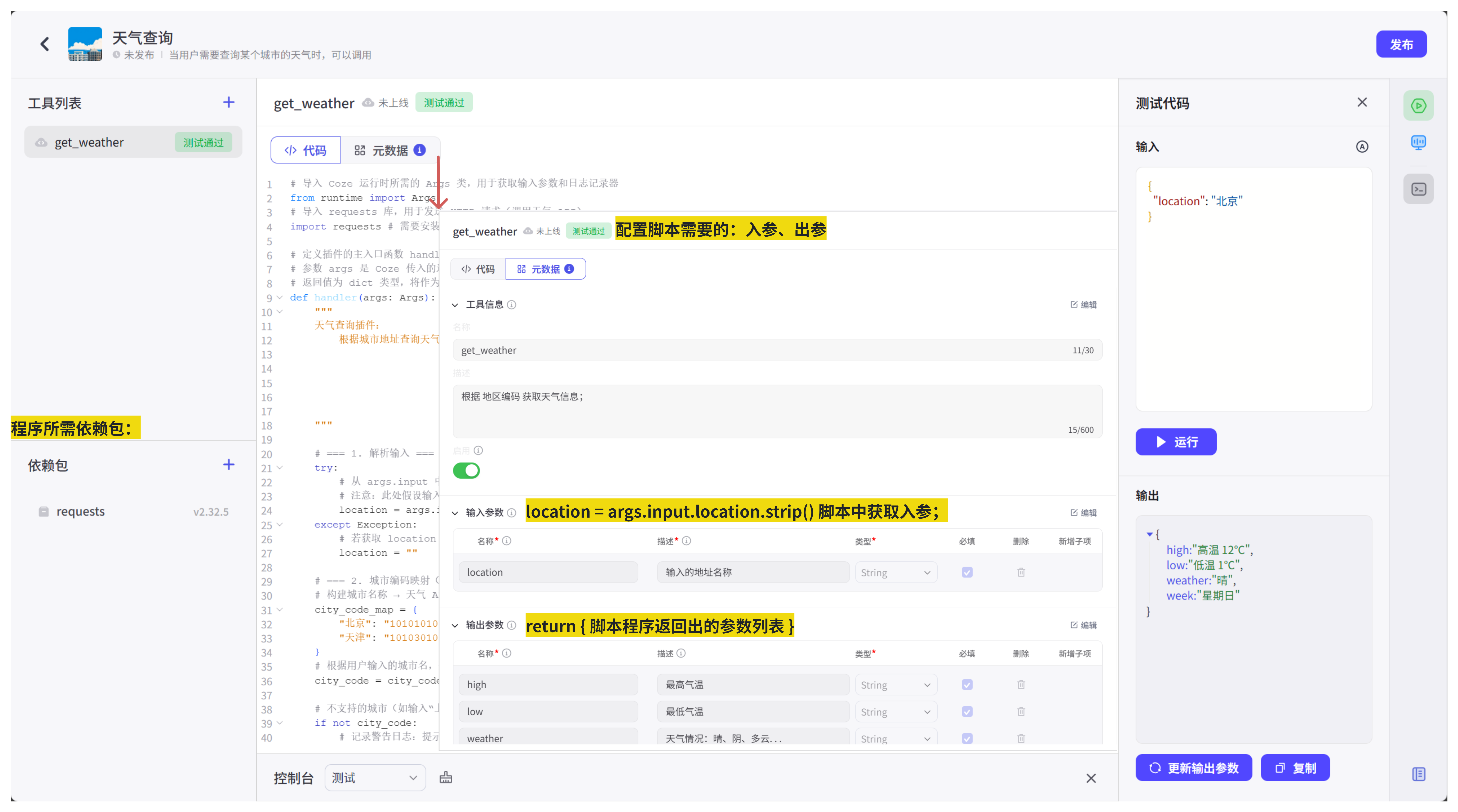 在 Coze 平台上创建自定义插件,本质是 将你自己的 API/服务封装成大模型可调用的工具
