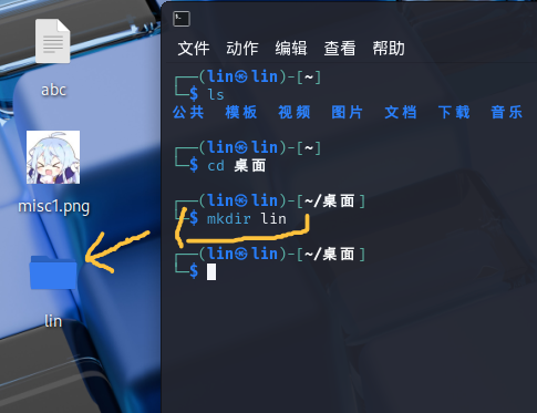 这样你就在桌面创建好了一个名叫lin的文件夹