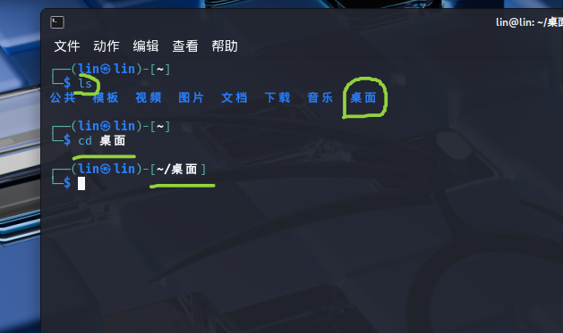 因为我的系统还没有装中文输入法,通过ls可以看到家目录下有"桌面",kali Linux粘贴和Windows不太一样,他们多加了一个shift