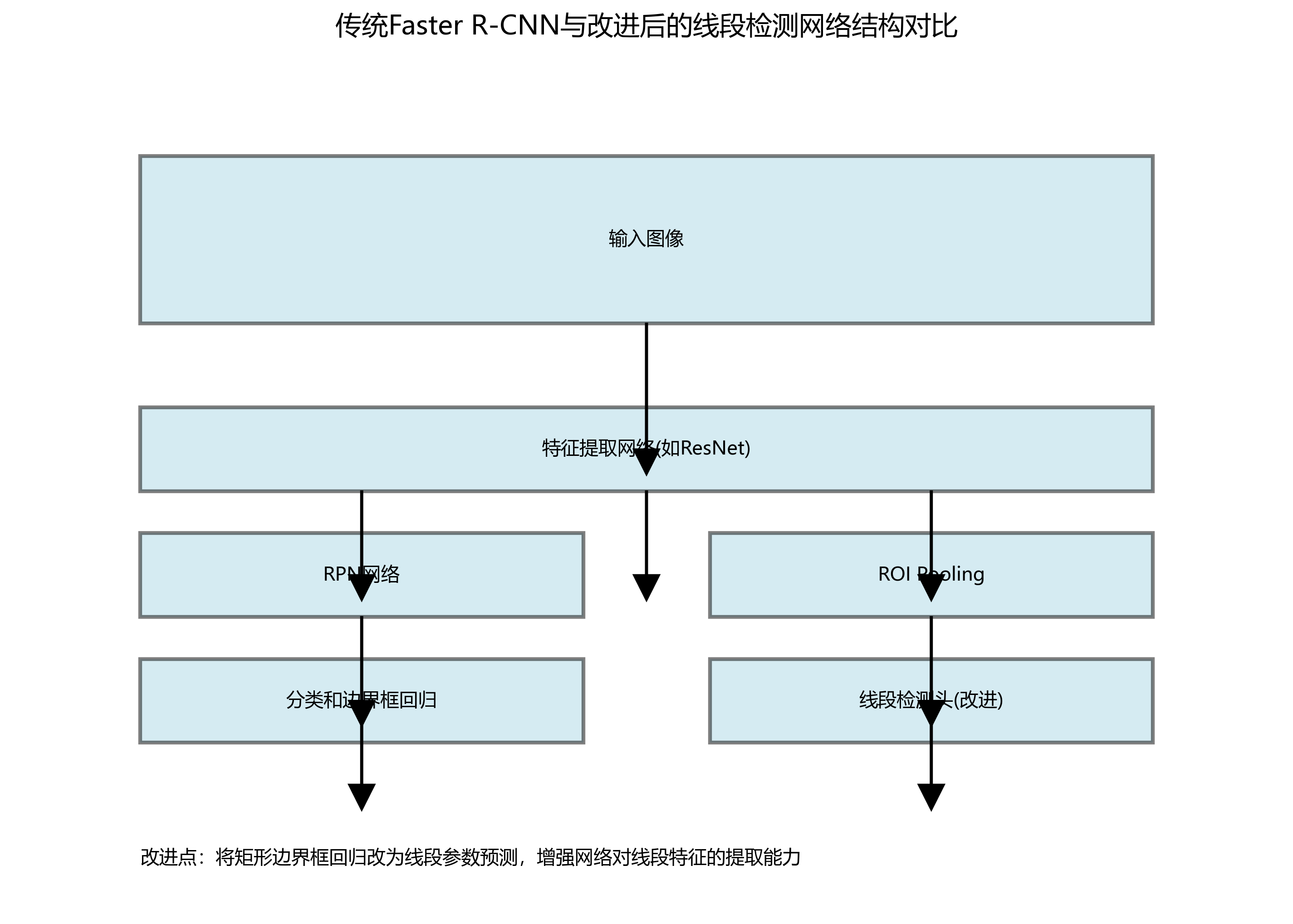 传统Faster R-CNN主要针对矩形目标设计,直接应用于线段检测存在一定局限性。为了更好地适应线段检测任务,我们需要对网络结构进行针对性改进。