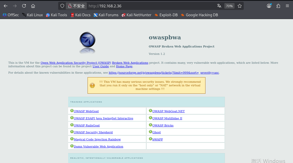 OWASP靶机提供的环境很多,集成了 WebGoat、Ghost、Mutillidae等靶机