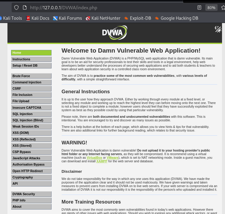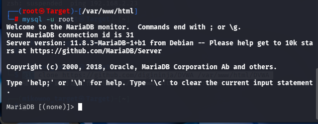 git clone https://github.com/digininja/DVWA /var/www/html/DVWA